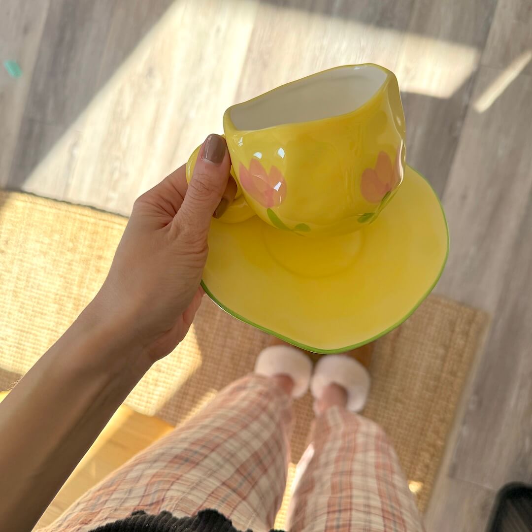 This collection is the perfect addition to your home to bring a perfect touch of spring and beautiful colors. These handcrafted mugs and plates are perfect to start your morning right, it can be used for coffee, tea, matcha or any beverage. Their vintage floral design will add to the aesthetic appeal of any drink. Each mug is made with love handspun ceramics and hand-painted design.